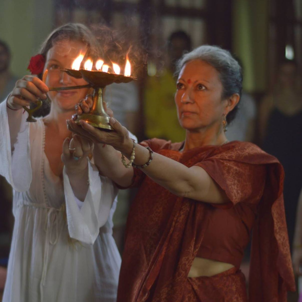 Photo taken by Rishikesh Yogpeeth, 2017, at the certification ceremony upon my completion of yoga teacher training in Rishikesh, India. Fellow student Emily Farmer is with me in the photo.